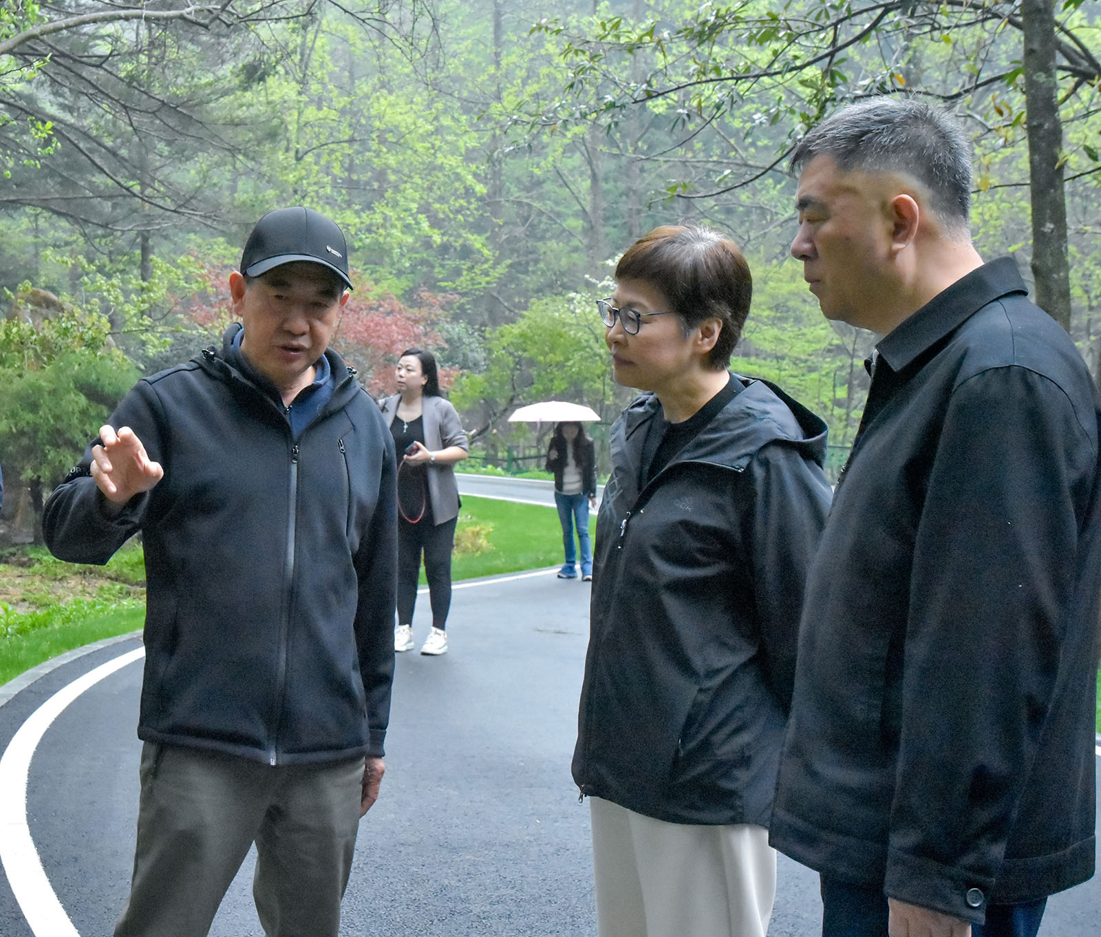 林鄭月娥一行先后參觀了廬山植物園杜鵑園、珍稀樹木園、山水景觀園、模式標本植物專類園和三老墓等園區,詳細了解了廬山植物園的發展歷史、生物多樣性遷地保育與資源可持續利用、對外科技交流等情況。林鄭月娥表示,廬山植物園歷史悠久,肯定會為我國生物多元化作出更大貢獻。